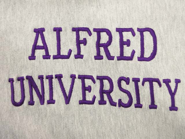 ニューヨーク州アルフレッドにある私立大学ALFRED UNIVERSITYの刺繍が施されています。リブライン入り