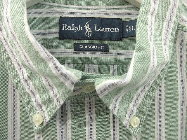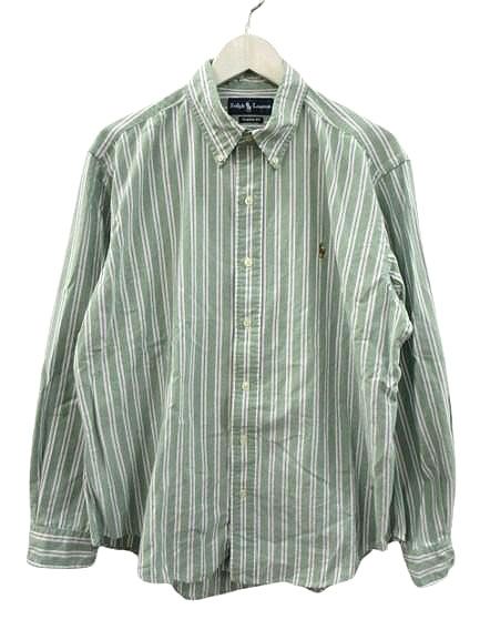 ラルフローレン RALPH LAUREN ストライプ 長袖 ボタンダウンシャツ CLASSIC FIT クラシックフィット LL 緑 グリーン トップス メンズ