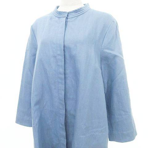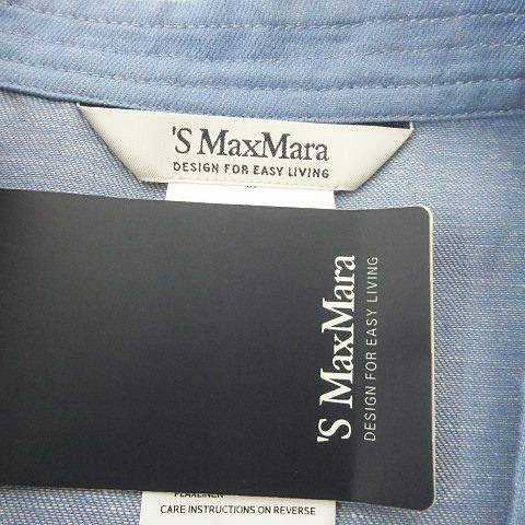 • 未使用品 Sマックスマーラ 'S Max Mara タグ付き ノーカラー コート ロング リネン混 シャツ ジャケット 44 Lサイズ 青 ブルー レディース