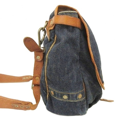 • ダブルアールエル RRL DENIM LEATHER MAILBAG デニム メッセンジャーバッグ ショルダーバッグ コンチョ インディゴ ☆AA★ メンズ