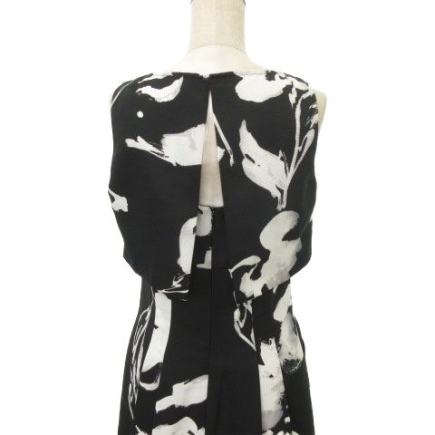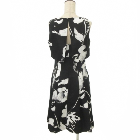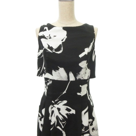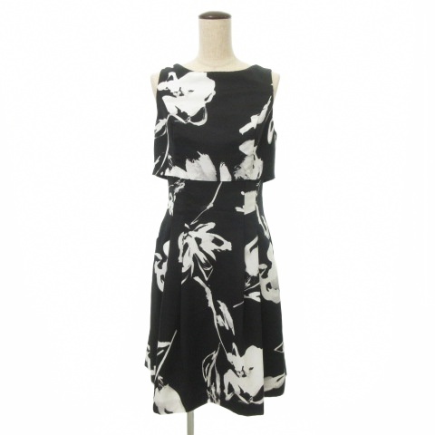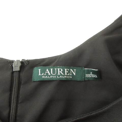ローレンラルフローレン LAUREN RALPH LAUREN 美品 総柄 ノースリーブ ワンピース 国内正規 2 Mサイズ 黒 ブラック レディース