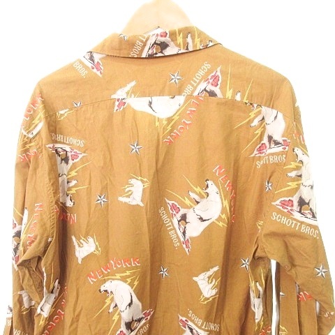 ショット SCHOTT 美品 アラスカ柄 スキッパー シャツ ブラウス 長袖 総柄 Lサイズ 茶 ブラウン系 メンズ