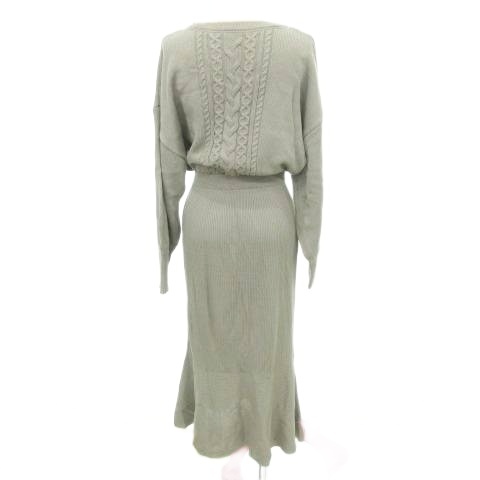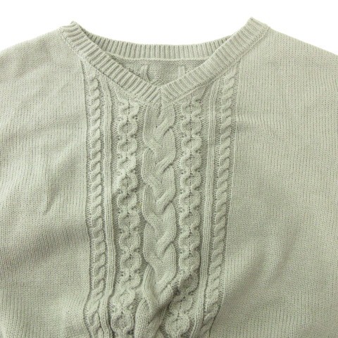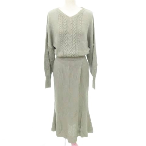 • アズールバイマウジー AZUL by moussy ニット ワンピース ロング 長袖 無地 Vネック 厚手 Mサイズ グレー レディース