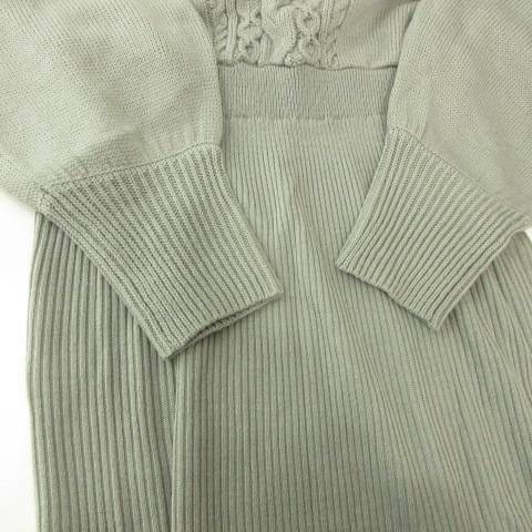 アズールバイマウジー AZUL by moussy ニット ワンピース ロング 長袖 無地 Vネック 厚手 Mサイズ グレー レディース