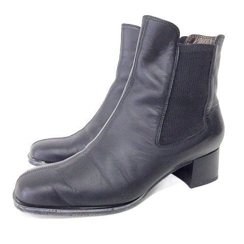• サルヴァトーレフェラガモ Salvatore Ferragamo サイドゴア ショートブーツ レザー 6 D 23.5cm相当 黒 ブラック A0129 レディース