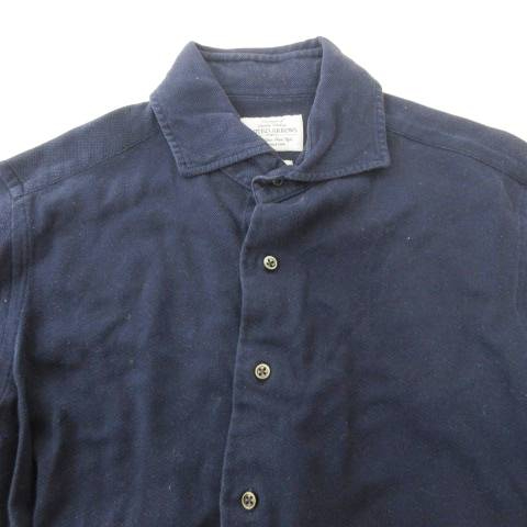 • ユナイテッドアローズ UNITED ARROWS シャツ 長袖 スリム 無地 薄手 Lサイズ 紺 ネイビー メンズ