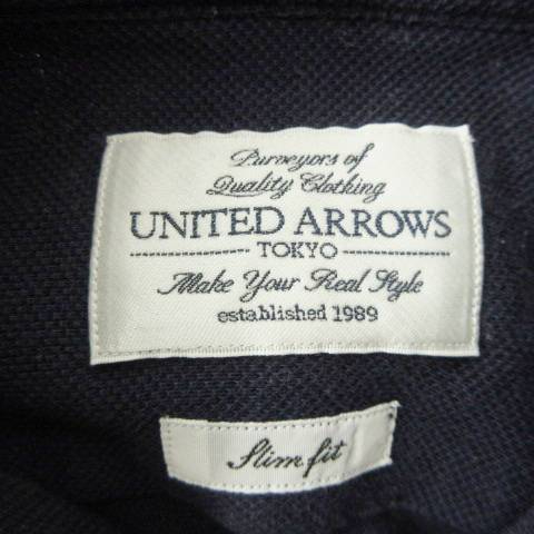 ユナイテッドアローズ UNITED ARROWS シャツ 長袖 スリム 無地 薄手 Lサイズ 紺 ネイビー メンズ