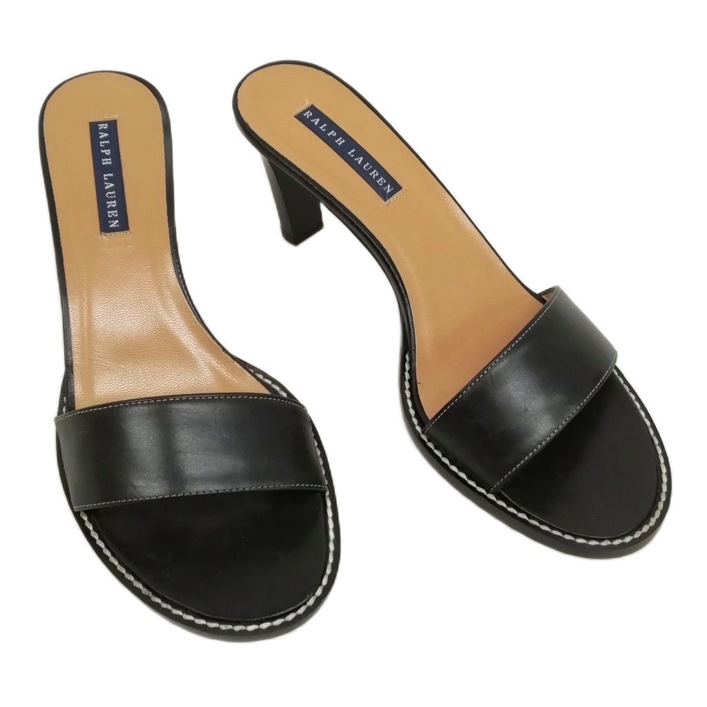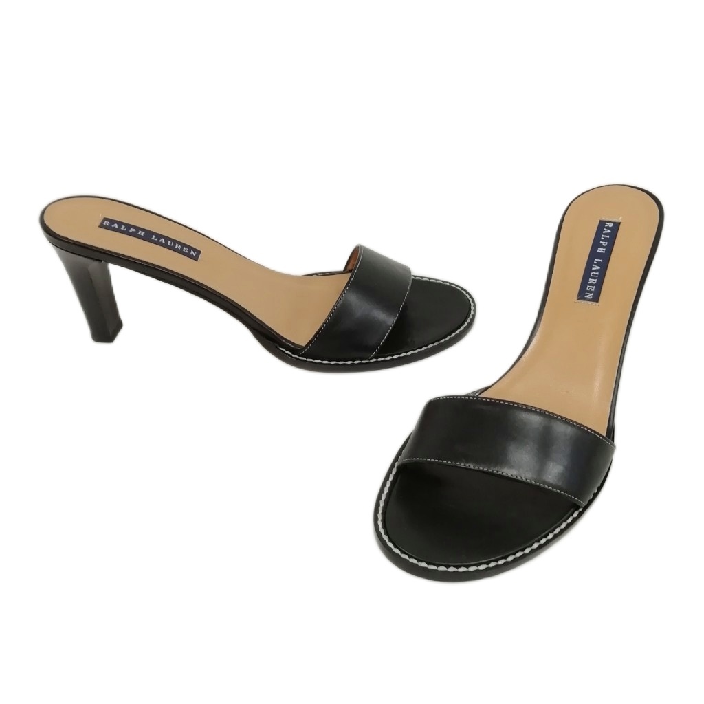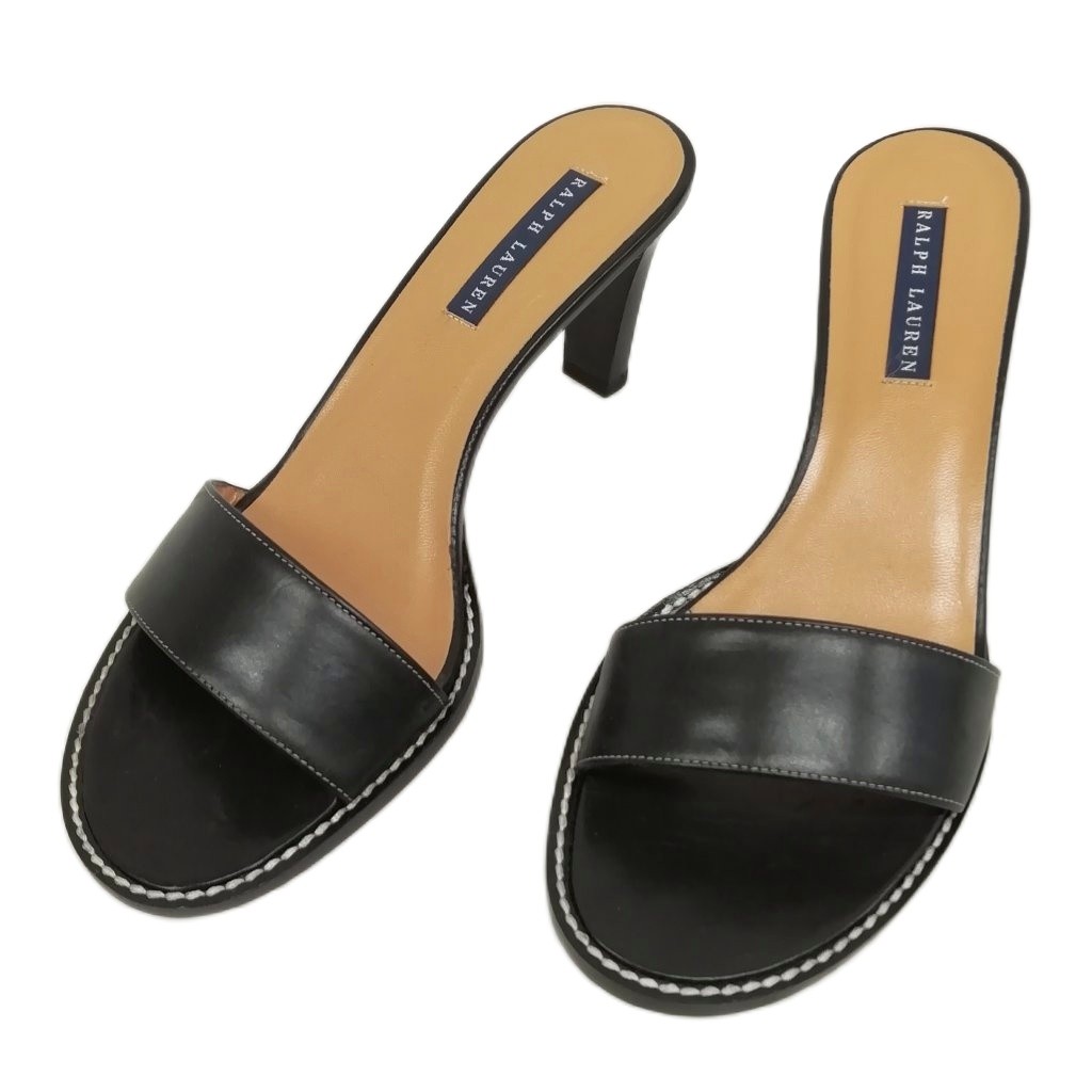 ラルフローレン RALPH LAUREN 美品 ヒール サンダル ミュール レザー 7.5 B ブラック レディース