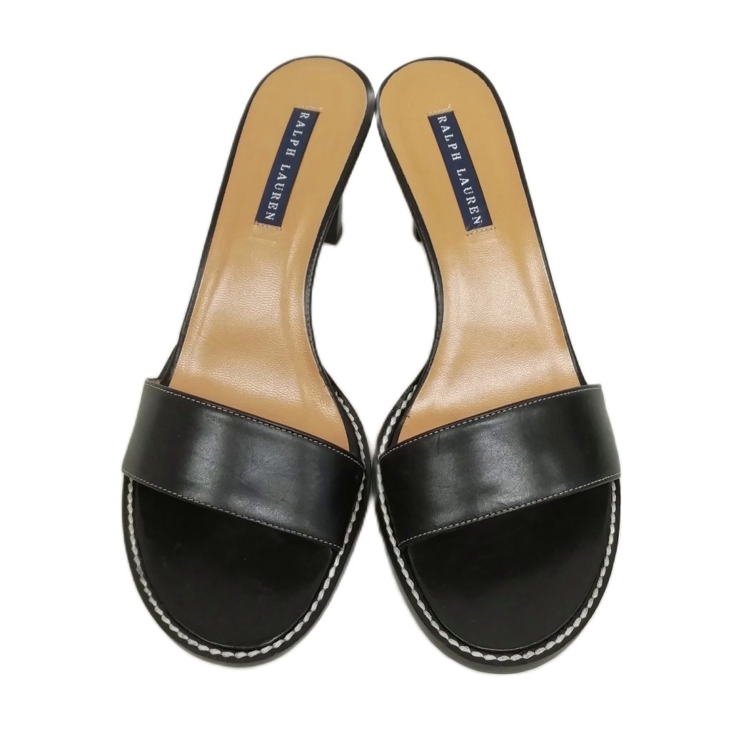 • ラルフローレン RALPH LAUREN 美品 ヒール サンダル ミュール レザー 7.5 B ブラック レディース