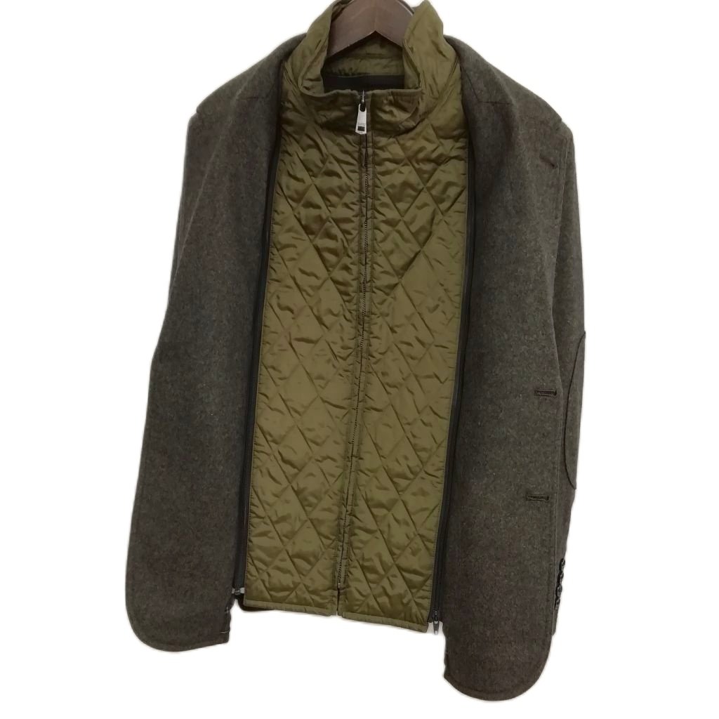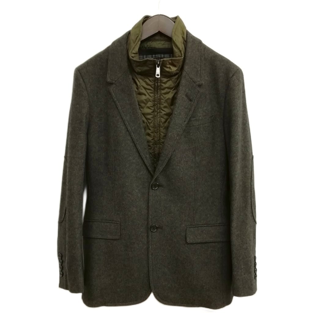 • バーバリーブラックレーベル BURBERRY BLACK LABEL レイヤード ジャケット テーラード ブレザー チェック裏地 S ダークオリーブ メンズ