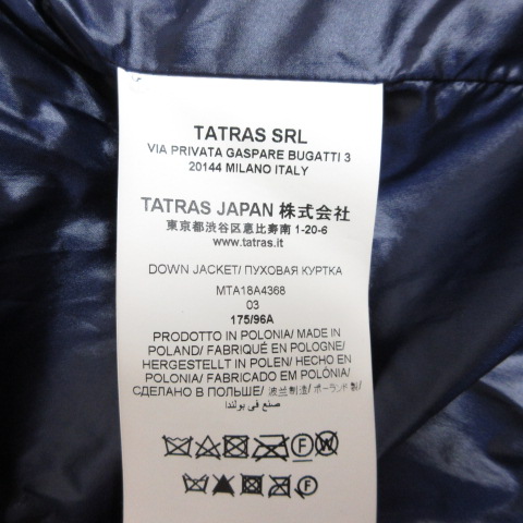 • タトラス TATRAS ベルボ BELBO ダウン ジャケット 3 ネイビー MTA18A4368 ナイロン フード取外し可 正規品 メンズ