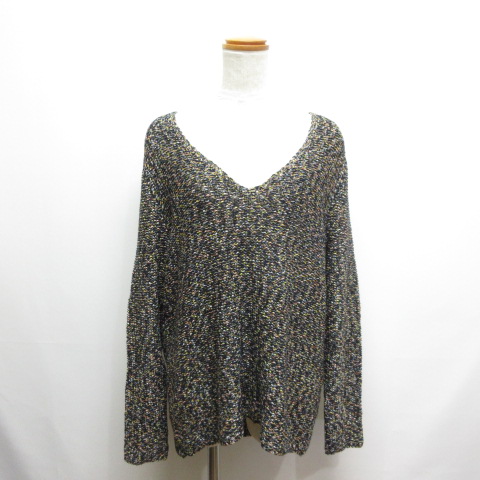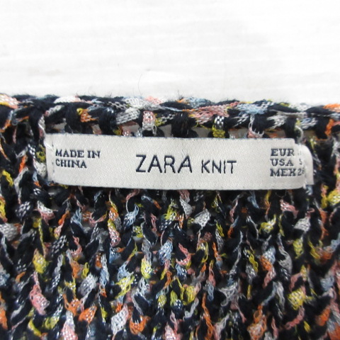 ザラ ZARA 長袖 Vネック ミックスニット プルオーバー S ネイビー系 ローゲージ カットソー レディース