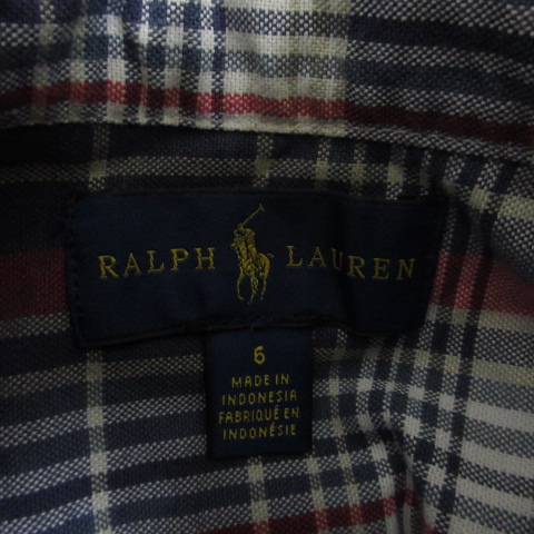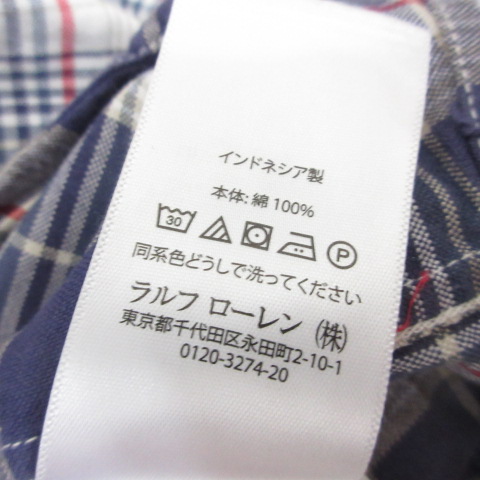 ラルフローレン RALPH LAUREN 子供服 チェック柄 長袖 ボタンダウン シャツ 120 ネイビー系 コットン 正規品 キッズ