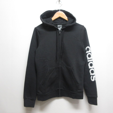 アディダス adidas スウェット ジップ フーディー パーカー リニアロゴ OT 黒 ブラック スポーツウェア レディース