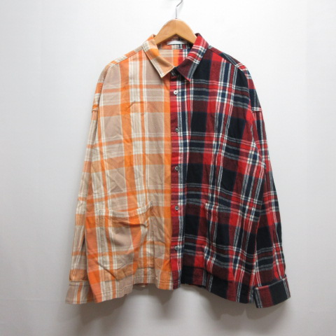 • ディスカバード DISCOVERED チェック柄 フランネル シャツ 2 赤ネイビー×オレンジ系 ポケット有り 長袖 日本製 メンズ