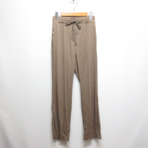 • ジーユー GU 美品 リブ スリム ストレート パンツ M 茶 ブラウン レディース