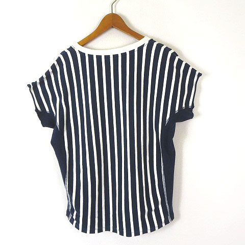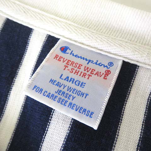 • チャンピオン CHAMPION リバースウィーブ Tシャツ カットソー CW-F302 ストライプ プリント ロゴ 刺繍 ラグランスリーブ 半袖 L 紺 ネイビー オフ白 レディース