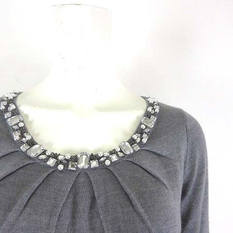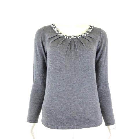 • クードシャンス CdeC COUP DE CHANCE ニット セーター ウール ビーズ パール ビジュー装飾 ギャザー 長袖 M 38 グレー レディース