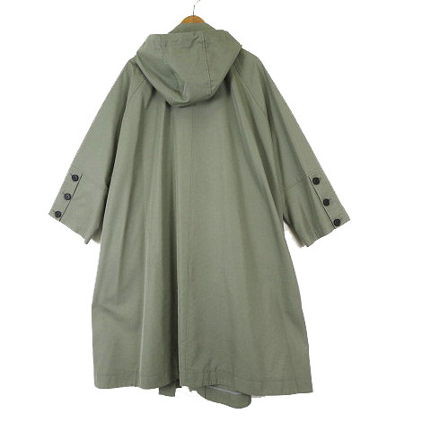 • ヴィヴァプレスト VIVA PRESTO コート モッズ風 ロングコート ジップアップ フード ラグランスリーブ M 38 セージグリーン 美品 レディース