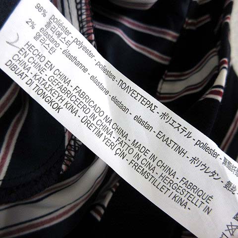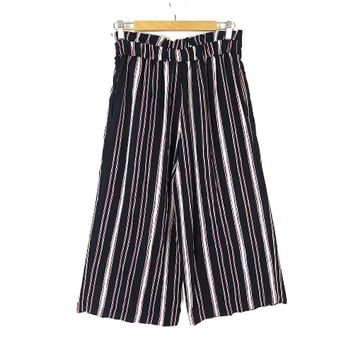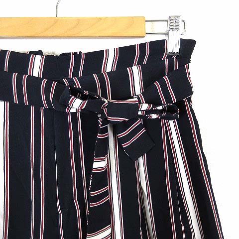• ザラ トラファルック ZARA Trafaluc パンツ ワイドパンツ イージー マルチストライプ柄 タック リボン 落ち感 とろみ ストレッチ M 紺 ネイビー 赤 レッド 白 ホワイト レディース