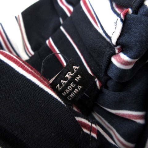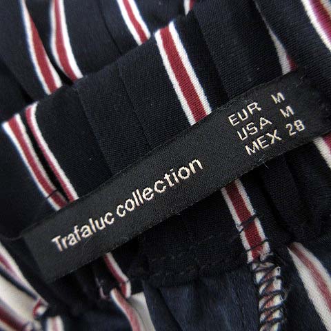 ザラ トラファルック ZARA Trafaluc パンツ ワイドパンツ イージー マルチストライプ柄 タック リボン 落ち感 とろみ ストレッチ M 紺 ネイビー 赤 レッド 白 ホワイト レディース