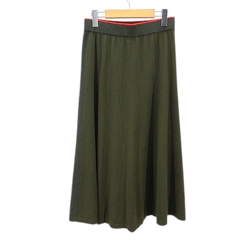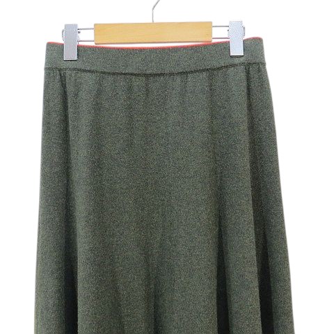 • ピーエスポールスミス PS Paul Smith ニット スカート フレア ロング丈 M カーキ系 切り替え ウエストゴム  レディース