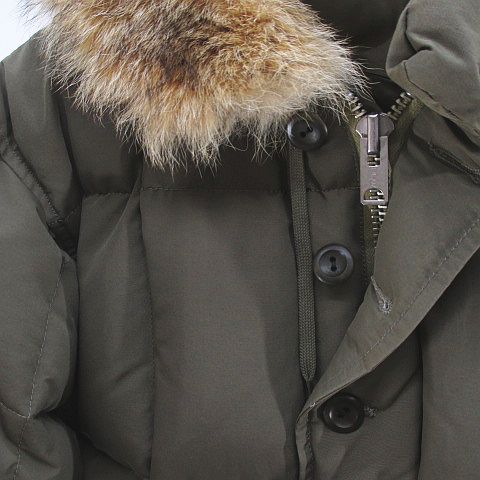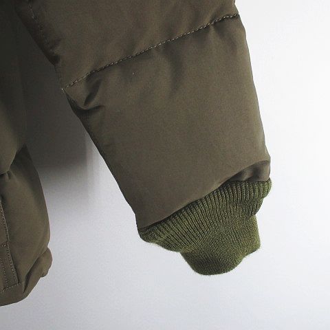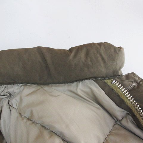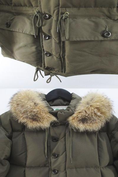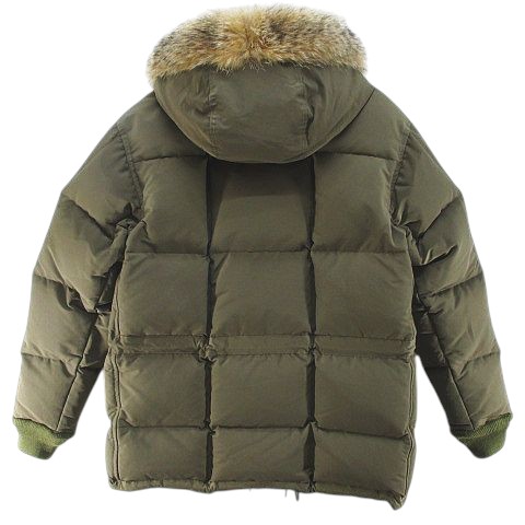 • ウエアハウス WAREHOUSE ブリザードプルーフ BLIZZARD PROOF ダウン ジャケット M 緑系 カーキ 無地 フード ファー ジップアップ ボタン 裏地 メンズ