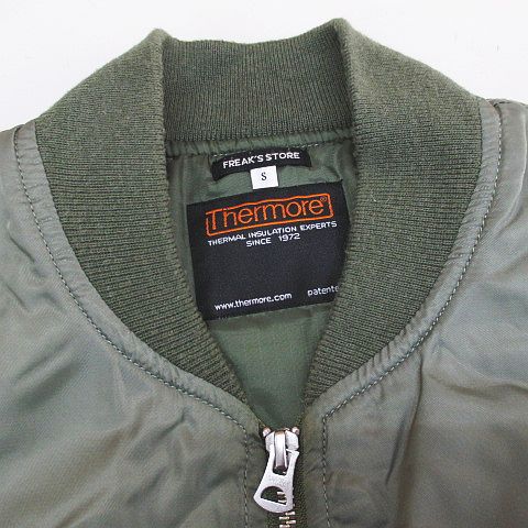 フリークスストア FREAKS STORE サーモア Thermore MA-1 ミリタリー ジャケット ブルゾン S 緑系 カーキ 中綿 ダブルジップ リブ 裏地 メンズ