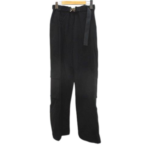 エモダ EMODA ロング丈 カーゴパンツ F 黒系 ブラック 無地 ウエストゴム ストレッチ 裏地 レディース