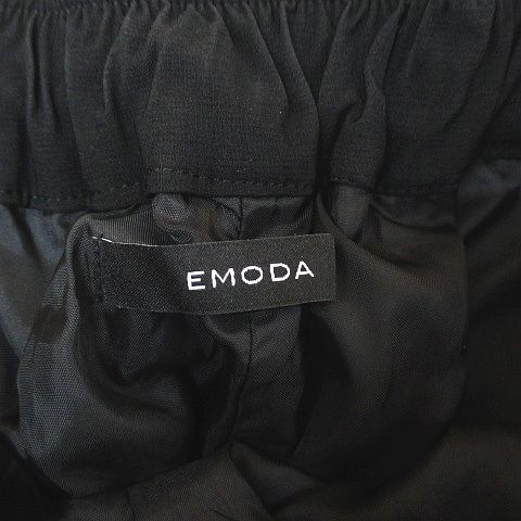 • エモダ EMODA ロング丈 カーゴパンツ F 黒系 ブラック 無地 ウエストゴム ストレッチ 裏地 レディース