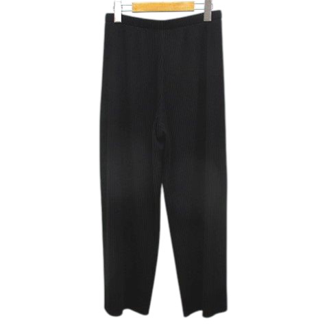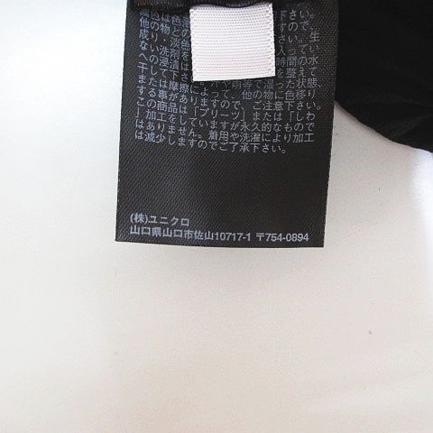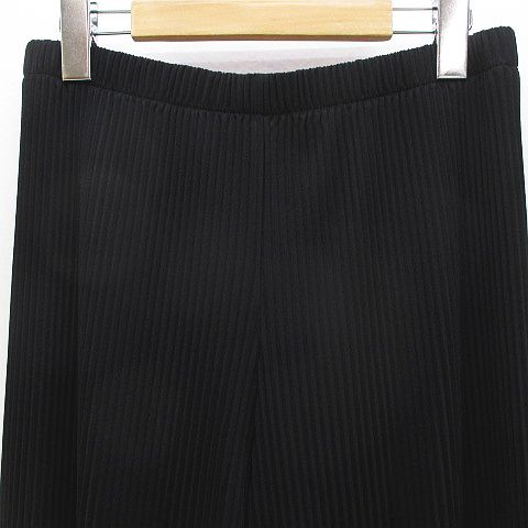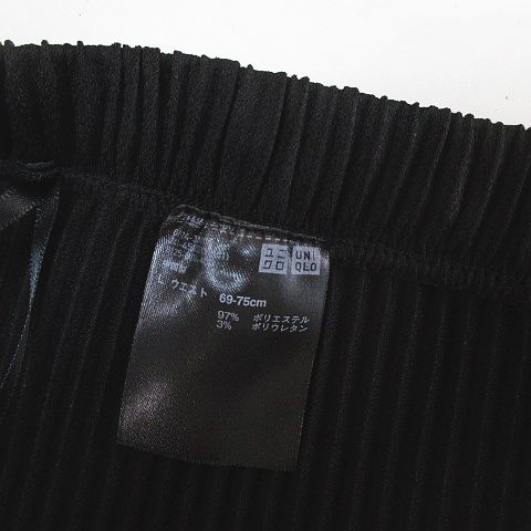 • ユニクロ UNIQLO ロング丈 プリーツ ストレートパンツ L 黒系 ブラック 無地 ウエストゴム ストレッチ レディース