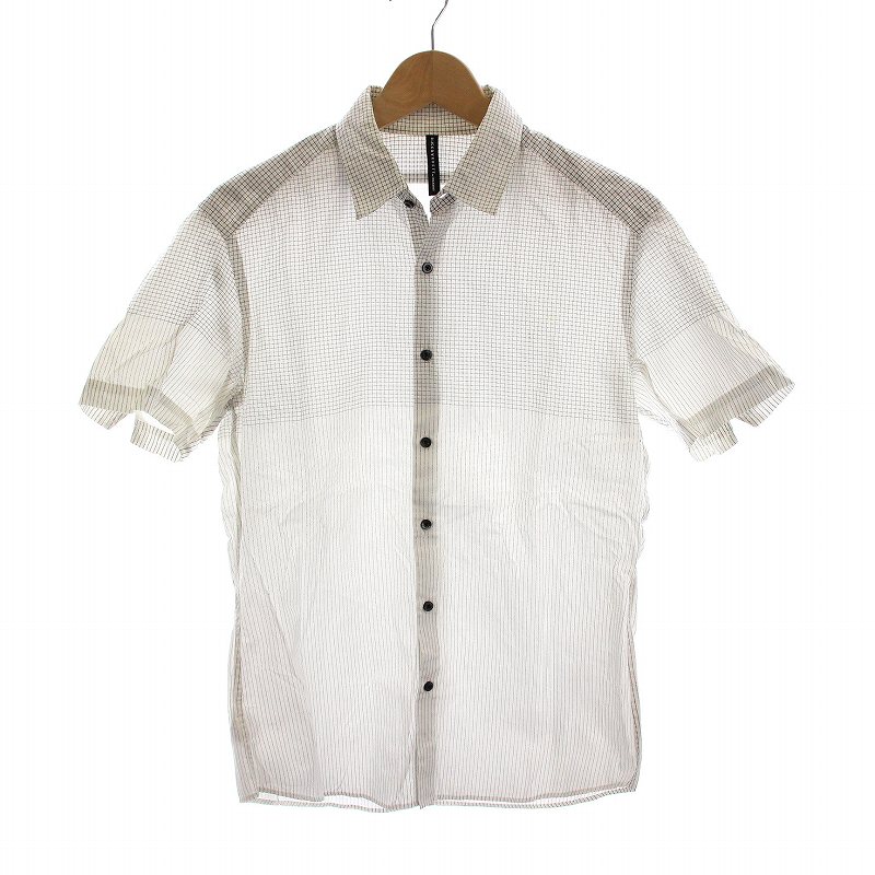 • ブラックバレット バイ ニールバレット BLACKBARRETT by neil barrett チェック シャツ コットン 半袖 2 白 黒 4MW51-628-09 /YM メンズ