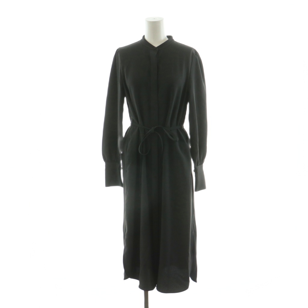 プラステ PLST ダブルジョーゼットワンピース ロング 長袖 ベルト付き S ブラック 12-1102004 /NQ レディース