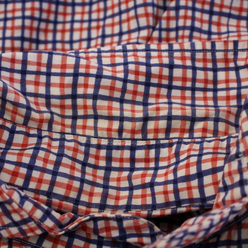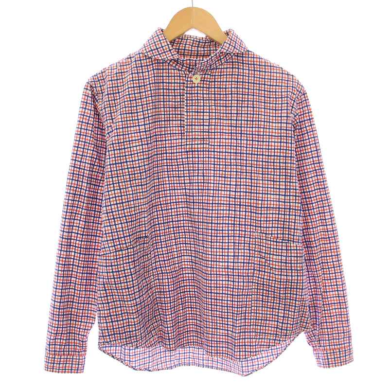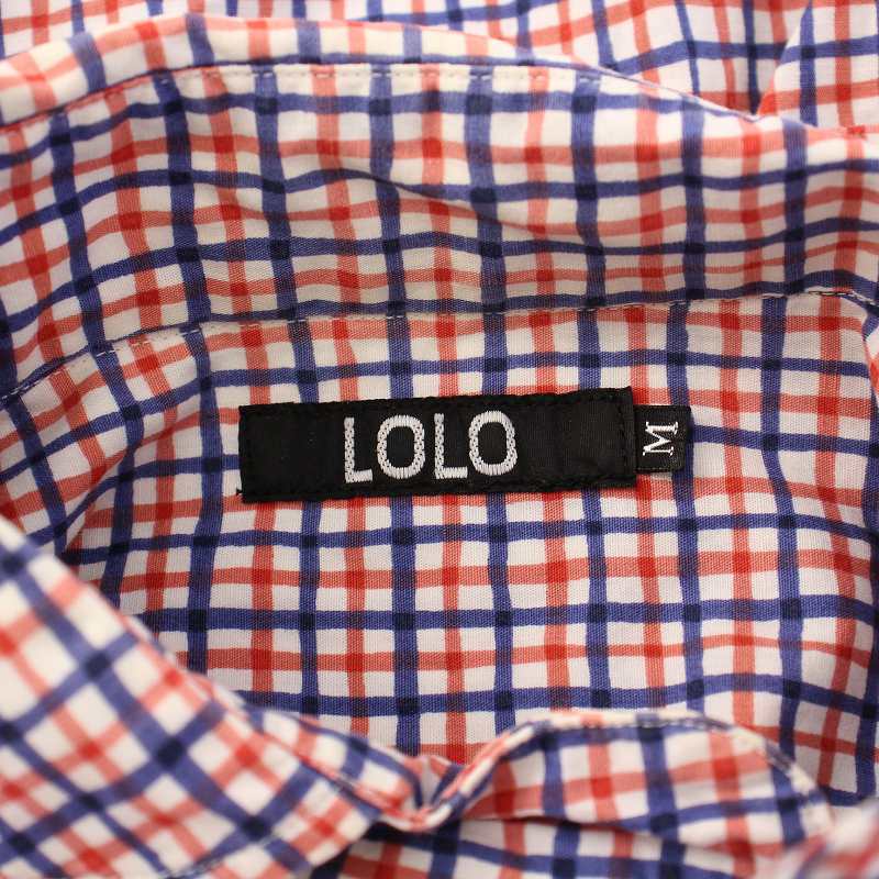 • ロロ LOLO ペンシルチェックシャツ カジュアル プルオーバー 長袖 ハーフボタン M 赤 レッド 青 ブルー LS-3G2 /BB メンズ