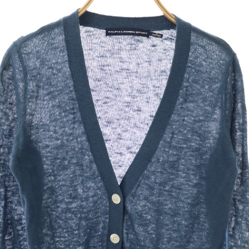 • ラルフローレン RALPH LAUREN SPORT カーディガン 長袖 ニット 薄手 リネン混 S 紺 /NR レディース