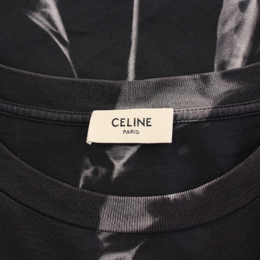 • セリーヌ CELINE Loose TEE ルーズTシャツ 半袖 クルーネック ストレッチ ロゴ プリント タイダイ柄 XS 黒 ブラック グレー 2X8206430 /BB メンズ