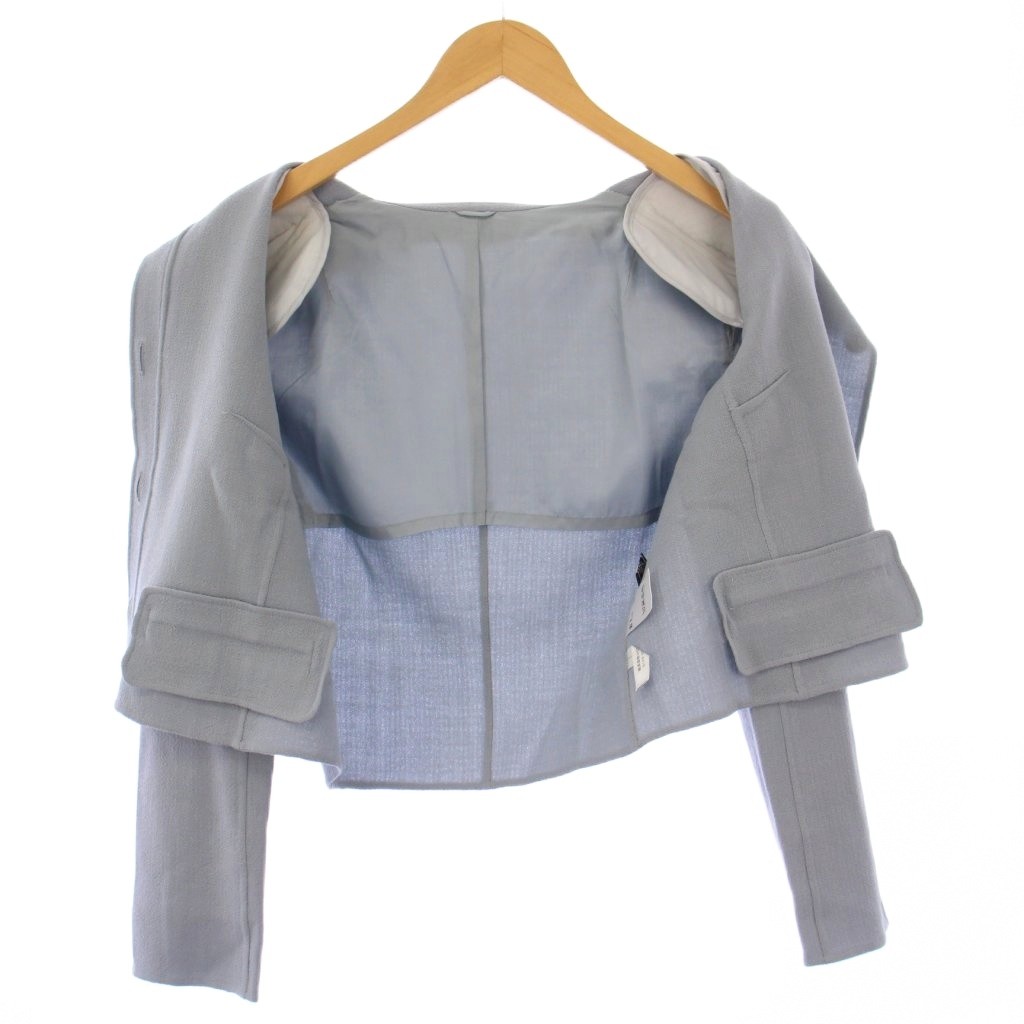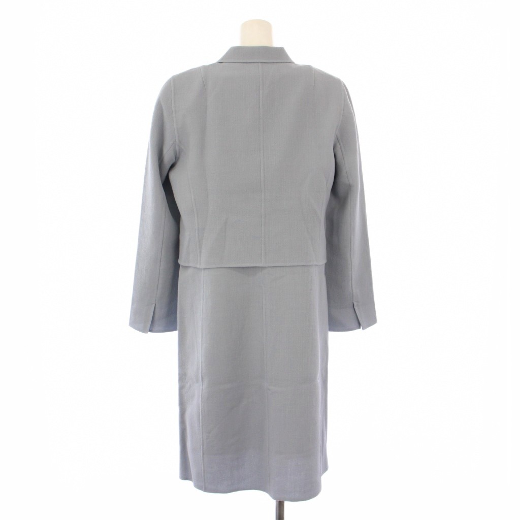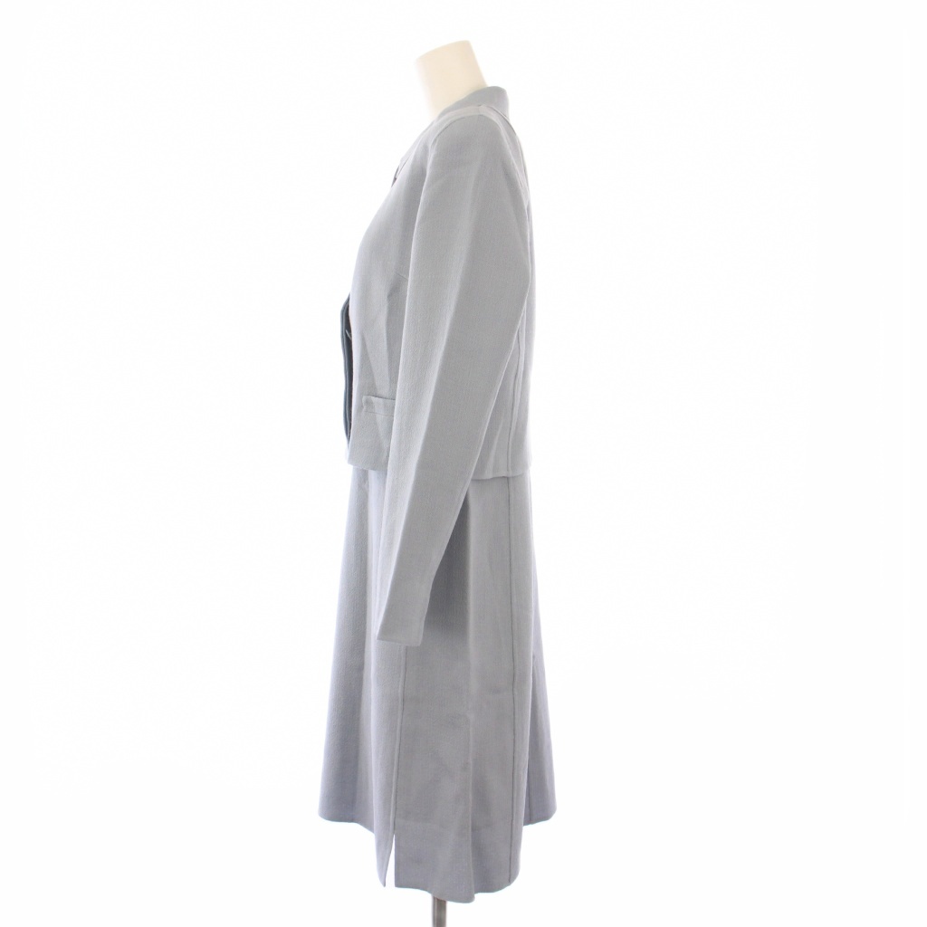 • 未使用品 レリアン Leilian セットアップ ステンカラージャケット アウター ショート丈 ワンピース ひざ丈 スキッパー ノースリーブ ウール 9 水色 ライトブルー タグ付き /BB レディース