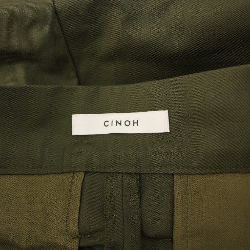 チノ CINOH ウエストベルトワイドパンツ スラックス ジップフライ 無地 ワンカラー 38 カーキ 19WPT007 /BB レディース