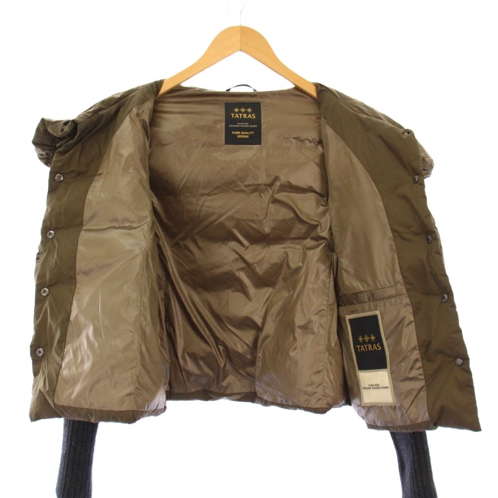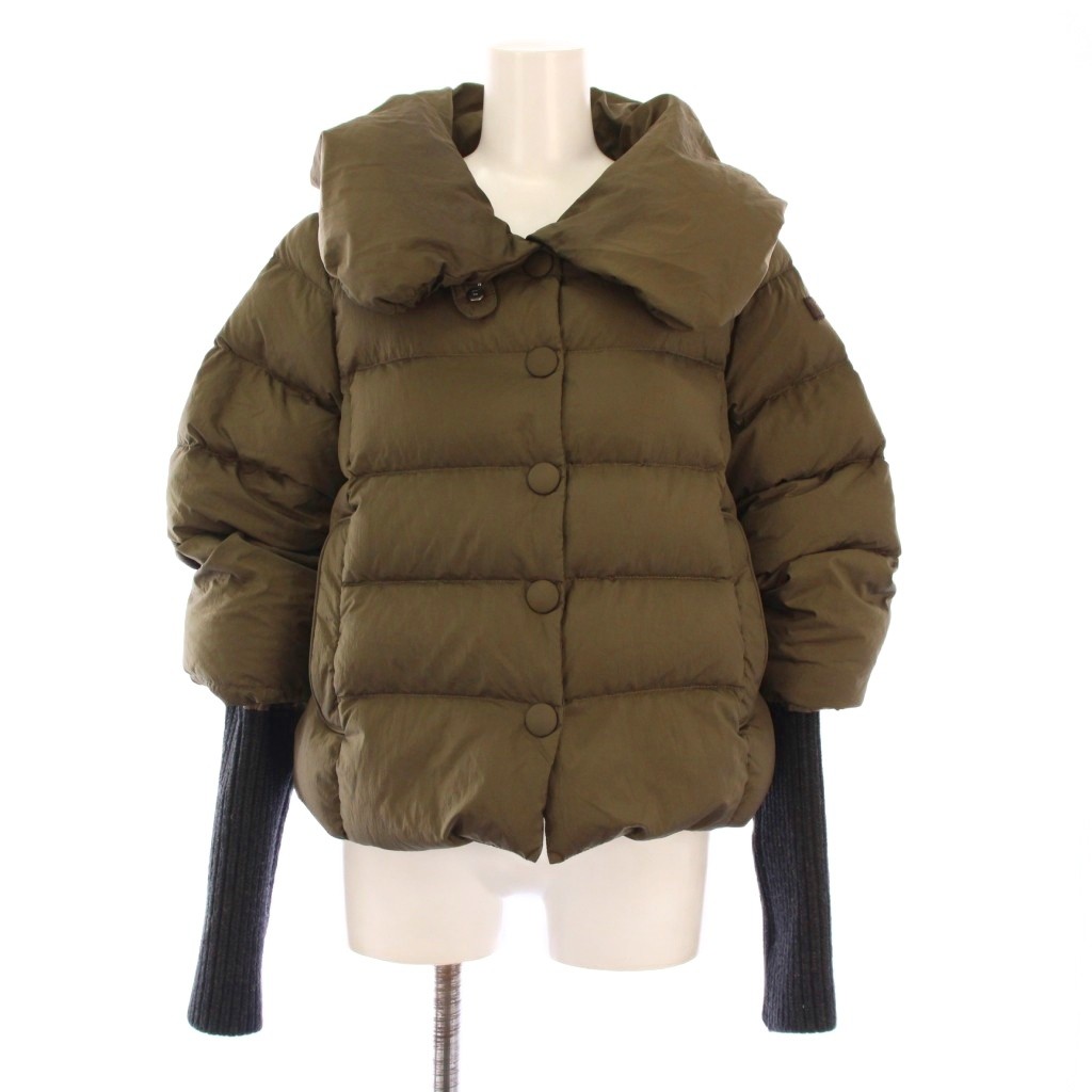 • タトラス TATRAS BECCARIA ダウンジャケット アウター ショート丈 リブニット 切替 ナイロン ウール 2 カーキ 黒 ブラック LTA16A4495 /BB レディース