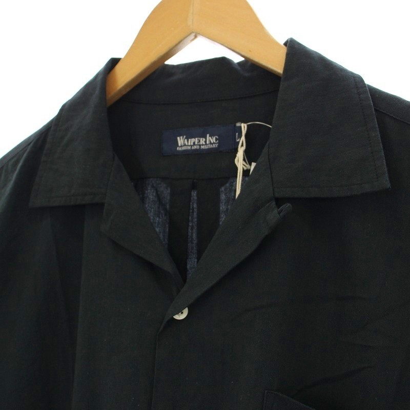 • ワイパー WAIPER.inc コットンレーヨン オープンカラーシャツ 半袖 L 黒 ブラック WP1063 /☆G メンズ