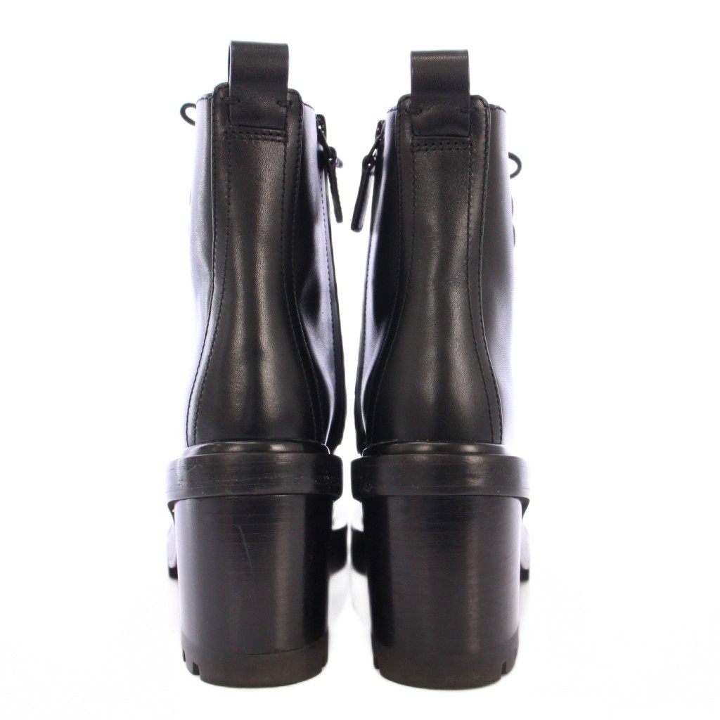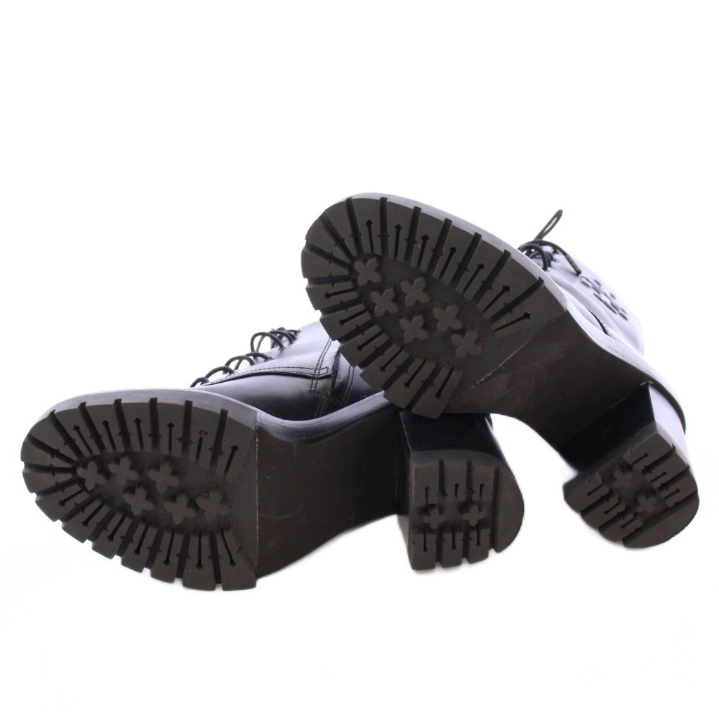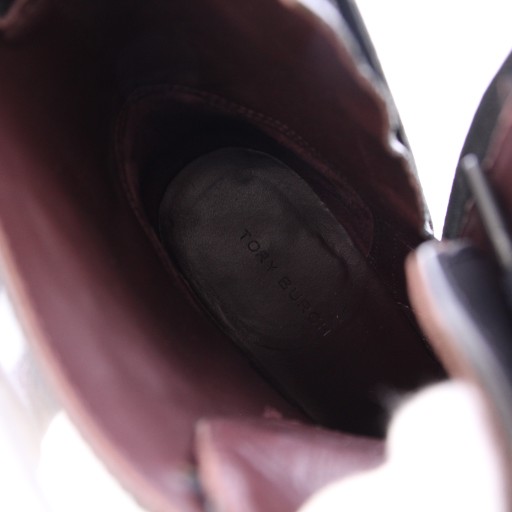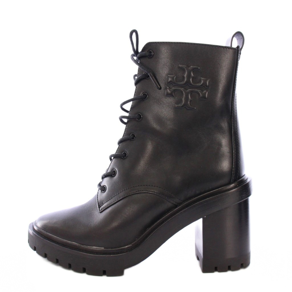 • トリーバーチ TORY BURCH ダブルTラグアンクルブーツ ショート レースアップ チャンキーヒール 厚底 レザー ワンカラー 5.5 黒 ブラック /BB レディース