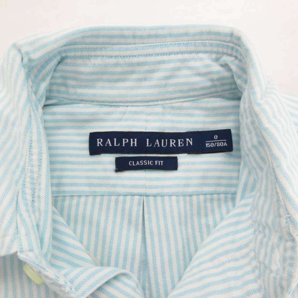 ラルフローレン RALPH LAUREN カラーポニー ボタンダウンシャツ BD 長袖 ストライプ柄 0 水色 ライトブルー 白 ホワイト /NU レディース
