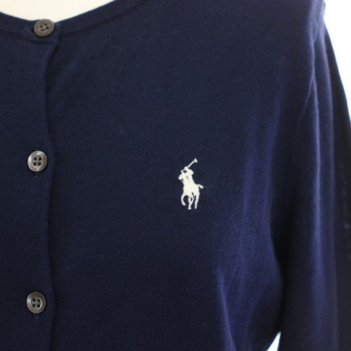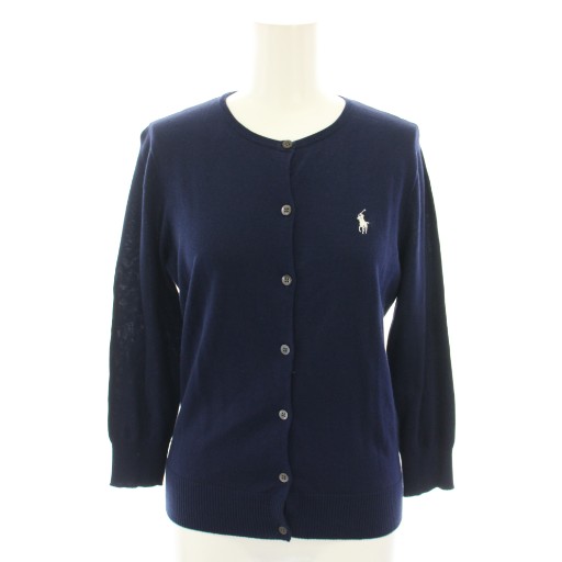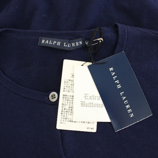 未使用品 ラルフローレン RALPH LAUREN ニットカーディガン クルーネック 長袖 ポニー刺繍 タグ付き M 紺 ネイビー SSRLYM2210 /YT レディース