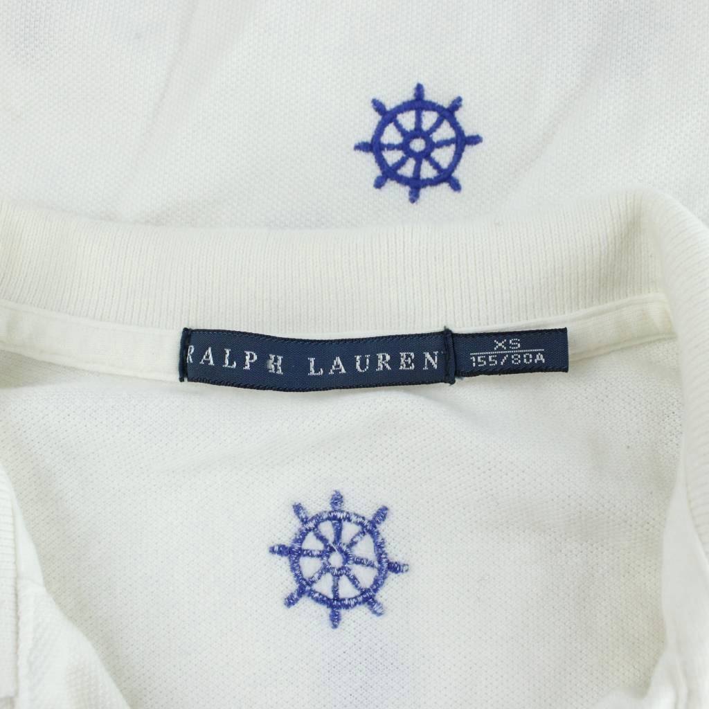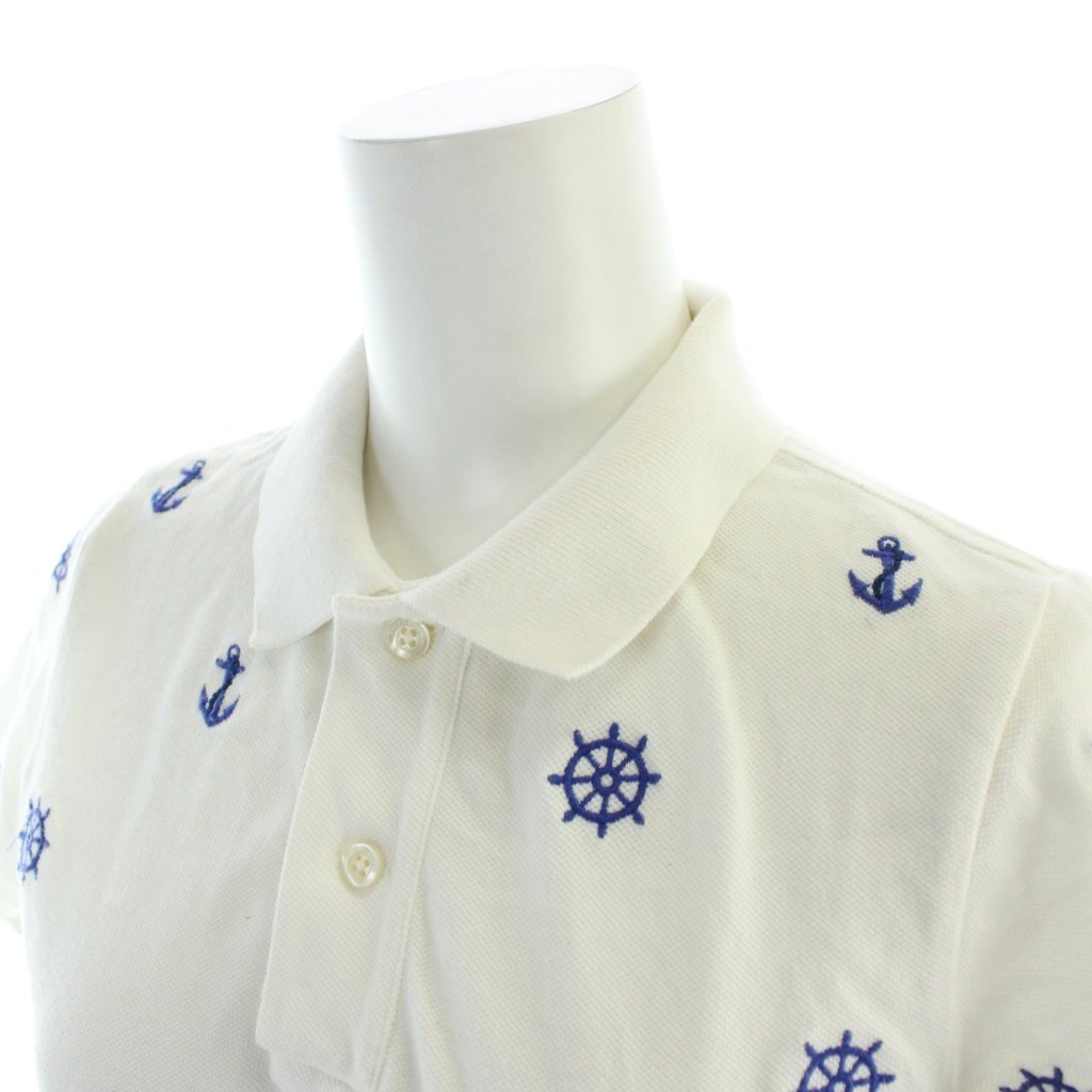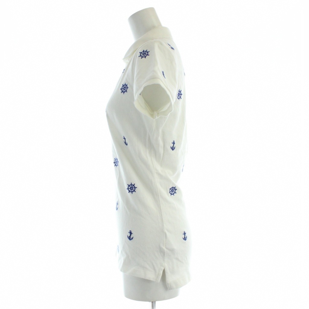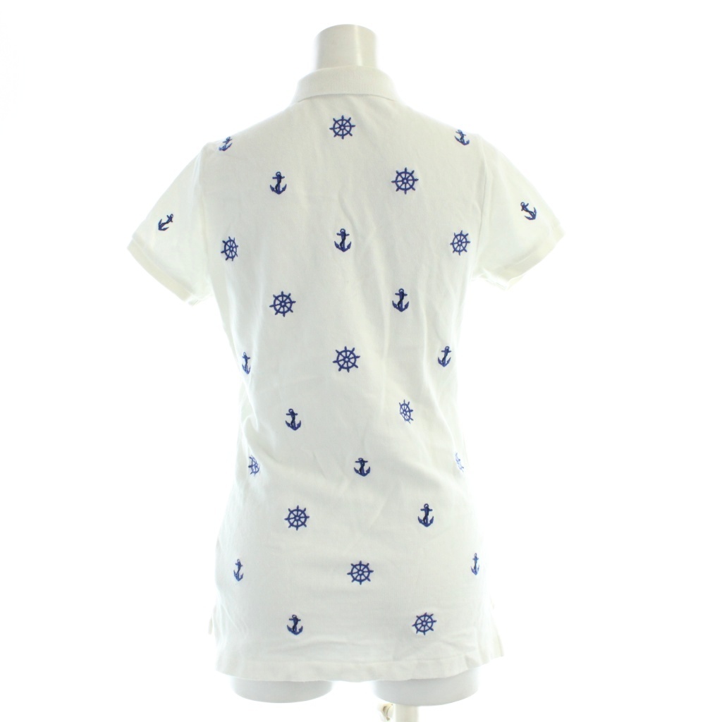 • ラルフローレン RALPH LAUREN ポロシャツ 半袖 総柄 舵 錨 マリン XS 白 ホワイト 0409443SSPO /AP レディース