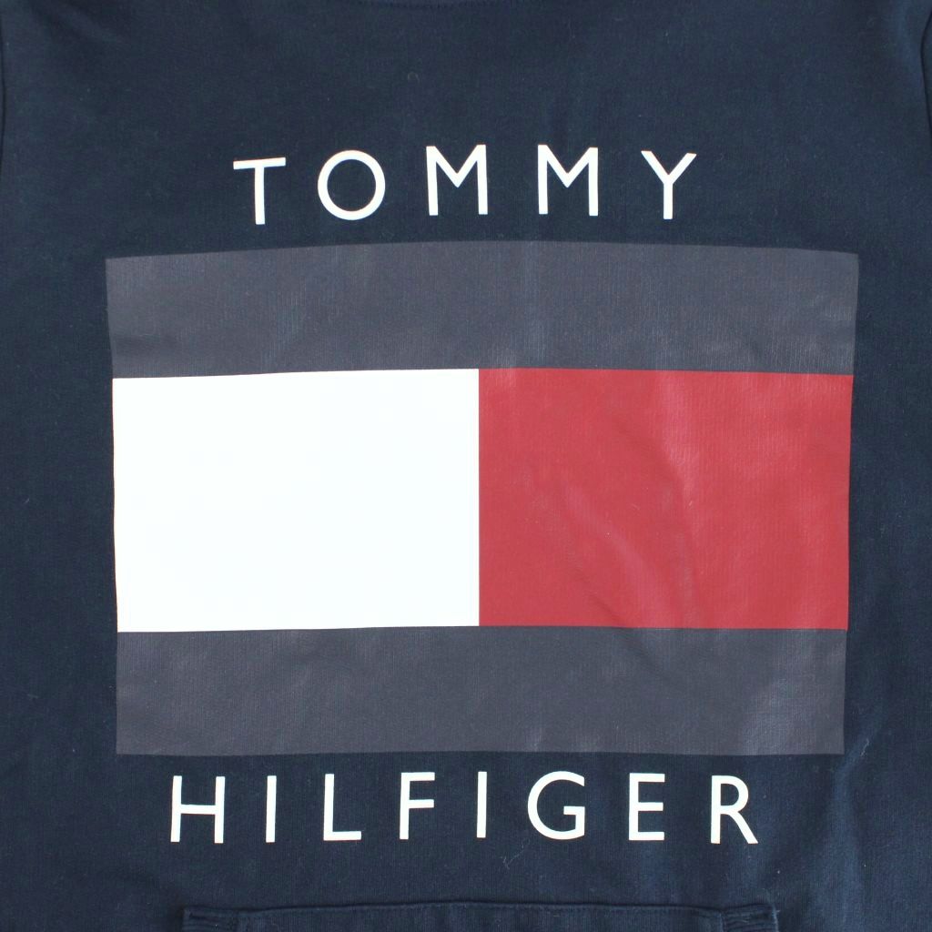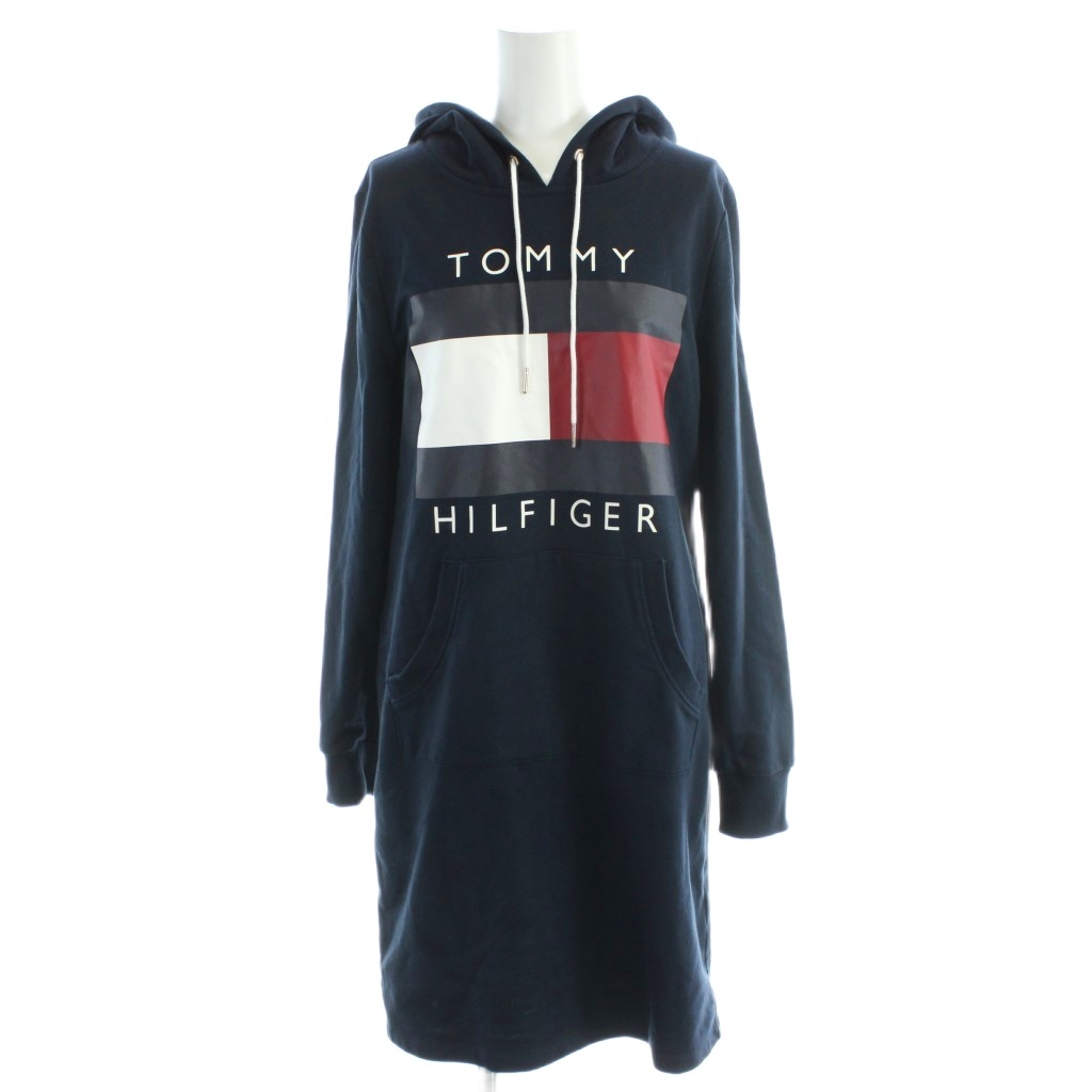 • トミーヒルフィガー TOMMY HILFIGER プルオーバーパーカー ロング丈 長袖 紺 ネイビー /AP レディース