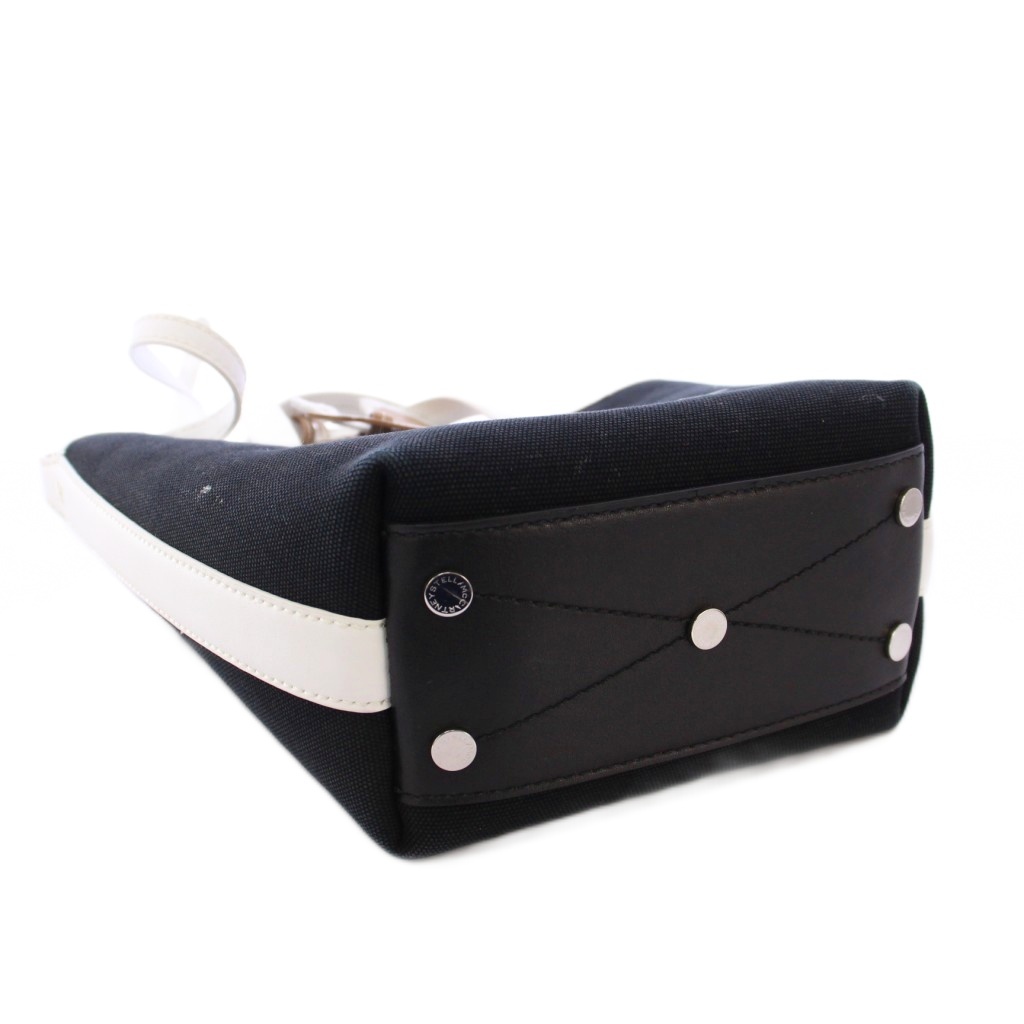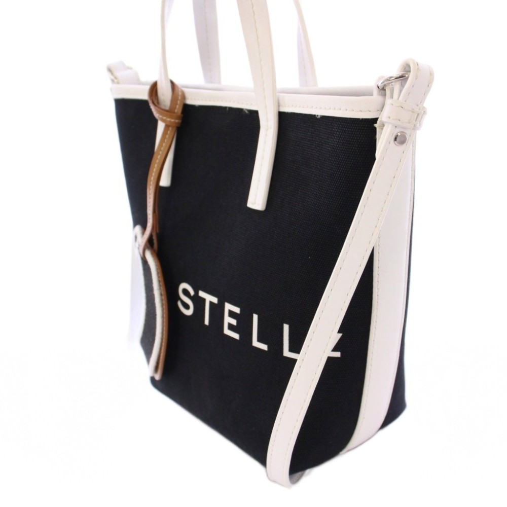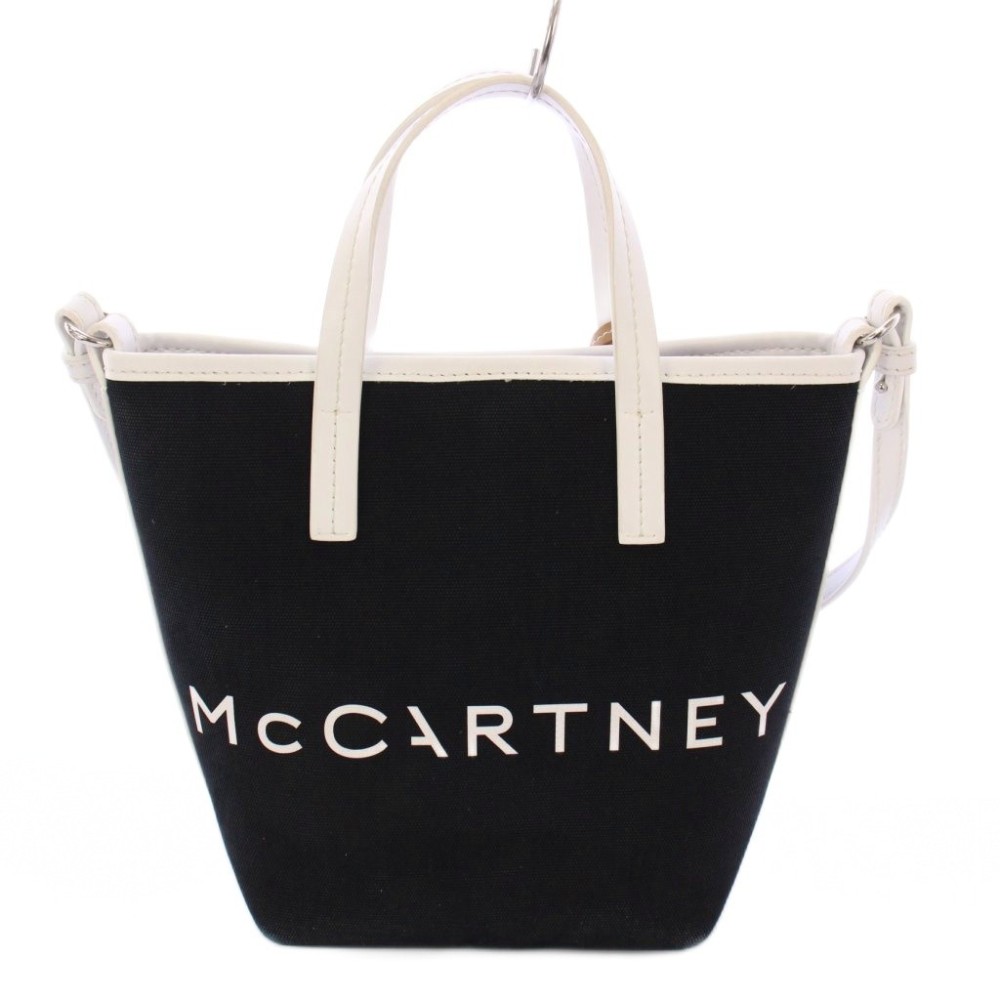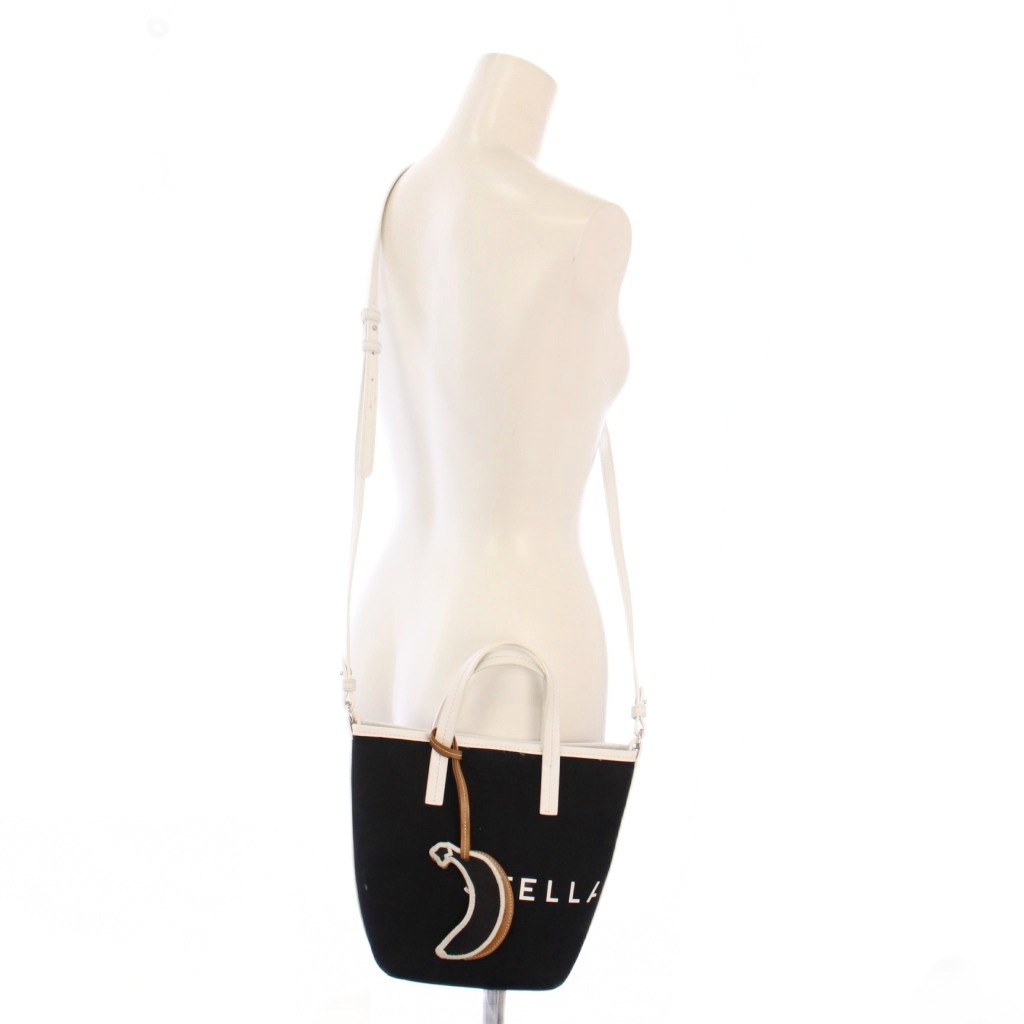 ステラマッカートニー STELLA McCARTNEY BANANATEX ロゴバケットバッグ 2WAY トートバッグ ハンドバッグ ショルダーバッグ キャンバス レザー プリント バイカラー 黒 ブラック 白 ホワイト /BB レディース