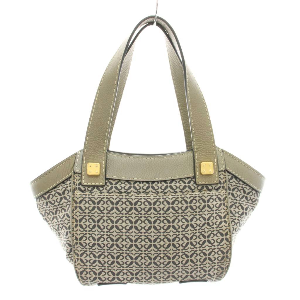 ロエベ LOEWE ニューロードライン リピートアナグラム ハンドバッグ キャンバス レザー 袋付き グレー /YT ■OH レディース