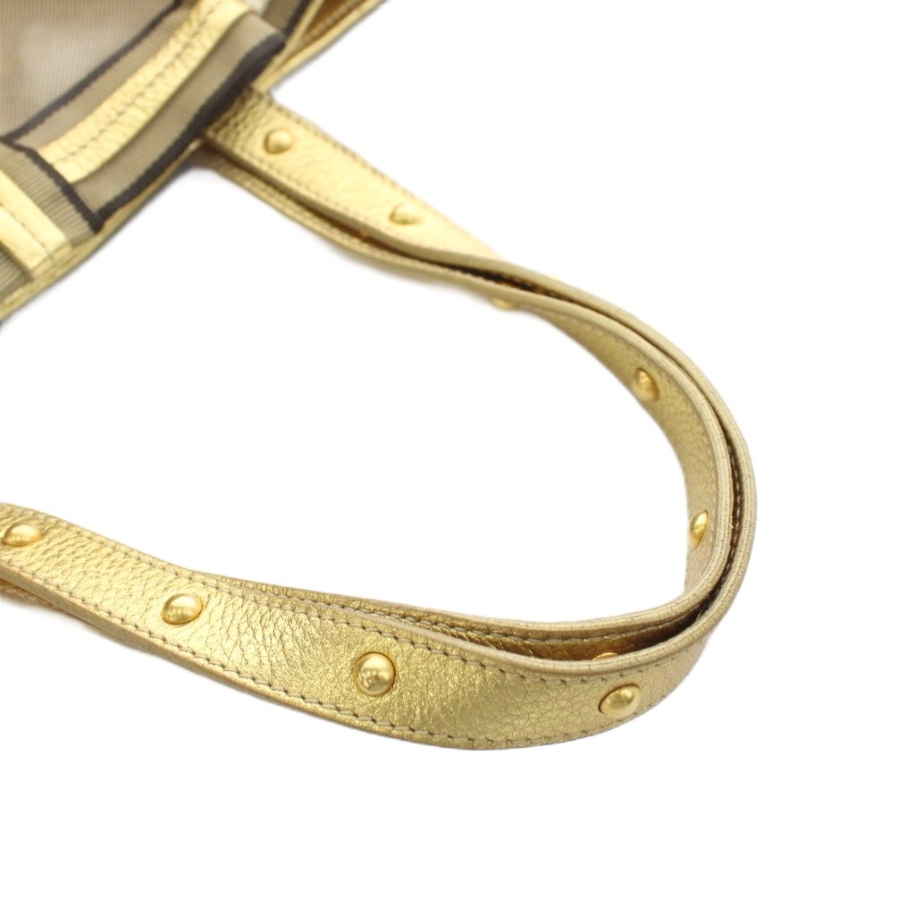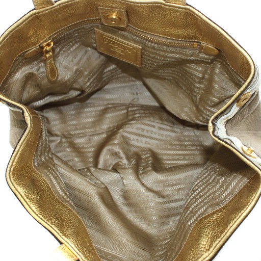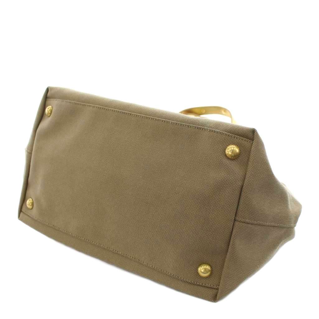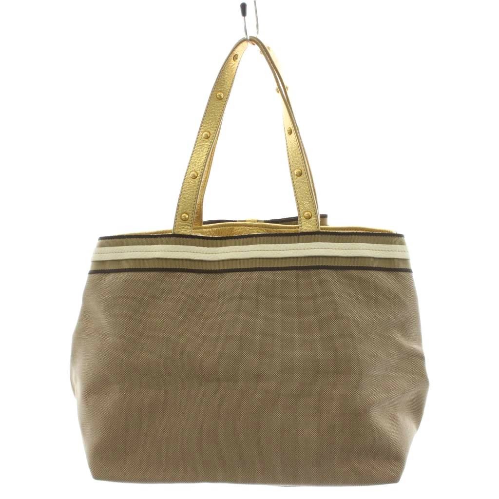プラダ PRADA 三角プレート トライアングルロゴ トートバッグ ハンドバッグ ロゴ リボン キャンバス レザー ベージュ ゴールド色 /AN20 ■OH レディース