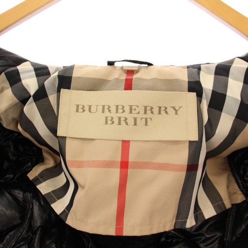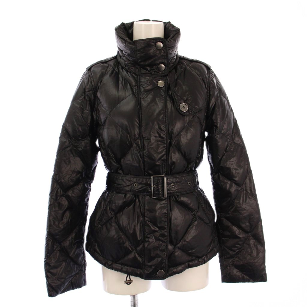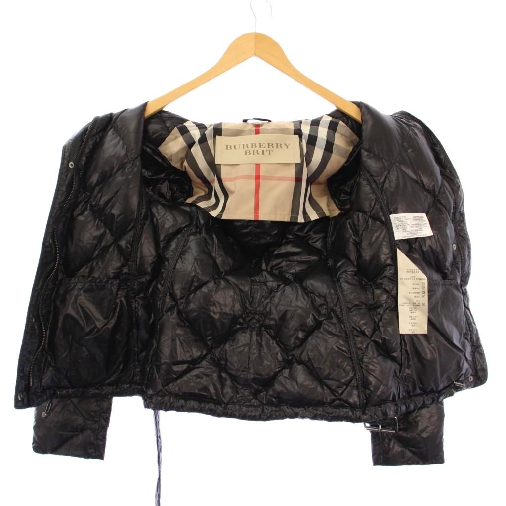 バーバリー BURBERRY BRIT ダウンジャケット スタンドカラー アウター ショート丈 ベルト ワンカラー ナイロン XS 黒 ブラック /BB レディース