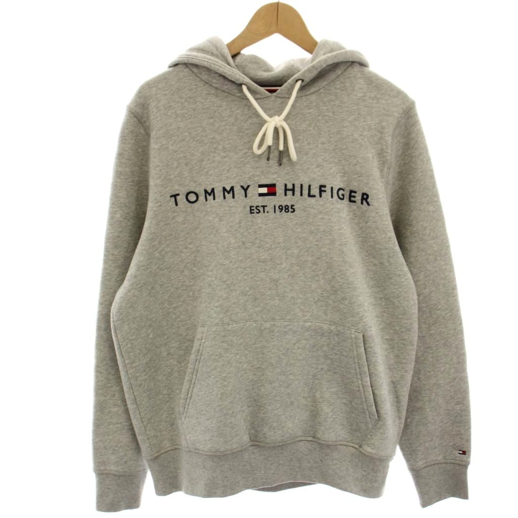 トミーヒルフィガー TOMMY HILFIGER パーカー スウェット プルオーバー ロゴ刺繍 裏起毛 長袖 M グレー /HN メンズ